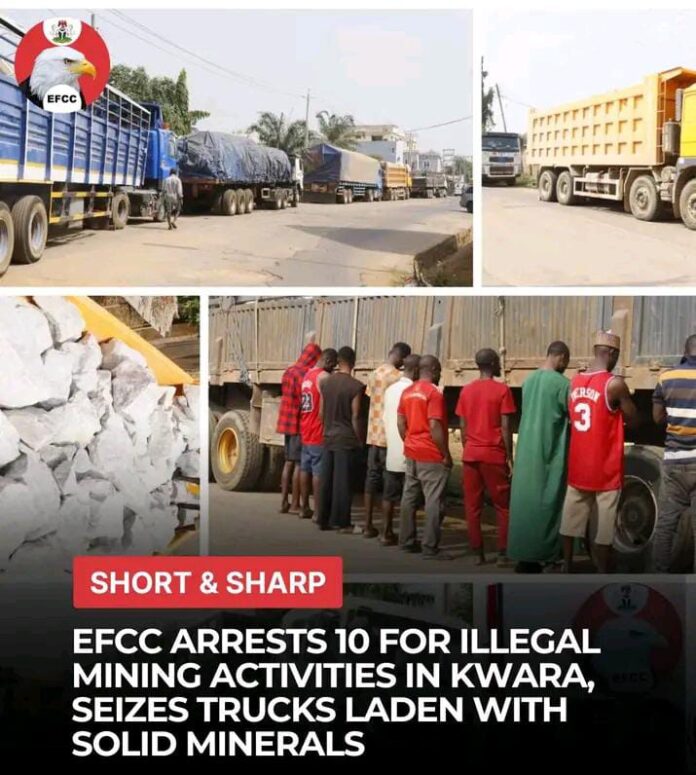 Operatives of the Ilorin Zonal Directorate of the Economic and Financial Crimes Commission, EFCC, have arrested ten individuals suspected of involvement in illegal mining activities along the Ilorin – Ogbomosho axis.